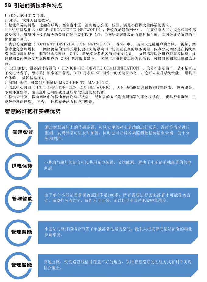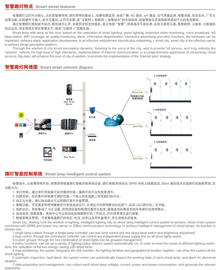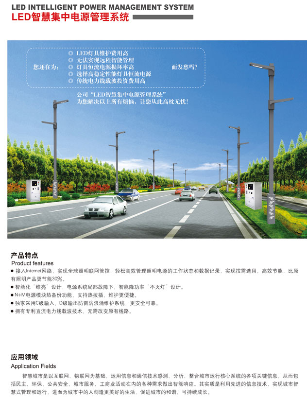 智慧路燈是使用專業技術,以路燈為載體,對路燈功能進行拓展,并實施遠程控制管理。功能由監測、影像、環保氣象的預警、通訊以及一些常用的功能組成,都可以集成到路燈上,并且可以實現多部門資源共享,節省了資源同時提高了當地的城市管理水平。